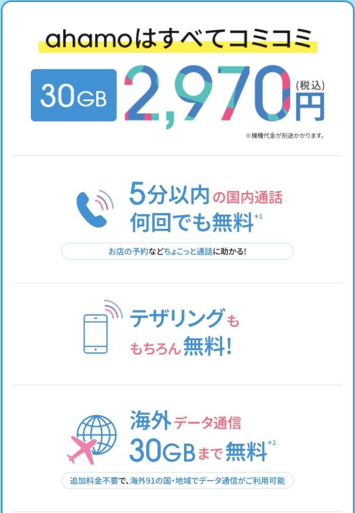 旅行前に不安をなくしましょう。→ ahamoを詳しく見る